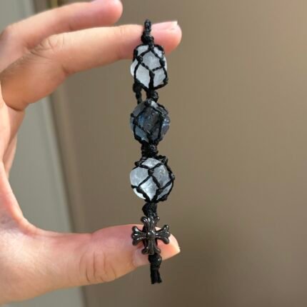 • Handcrafted raw crystal macrame necklace with khaki cord and teardrop accents—perfect for summer linen outfits and bohemian US style Raw Herkimer Diamond Crystal Macrame Choker|Macrame Craftsmanship BohoChoker Energy Jewelry HerkimerHealing $75.00